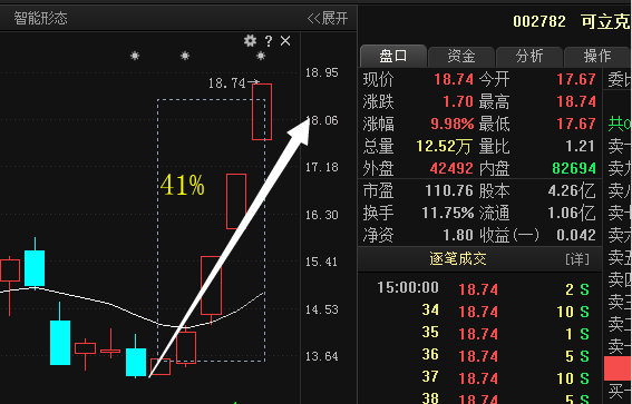 可立克(002782)這只股票用同樣的思路選出來講解,6.5日出現(xiàn)買點,果斷選出講解之后股價連續(xù)三個漲停,截止目前漲幅高達41%,恭喜當時看到老鐘講解及時布局的股友收獲一波利潤空間,類似牛股我會持續(xù)講解!