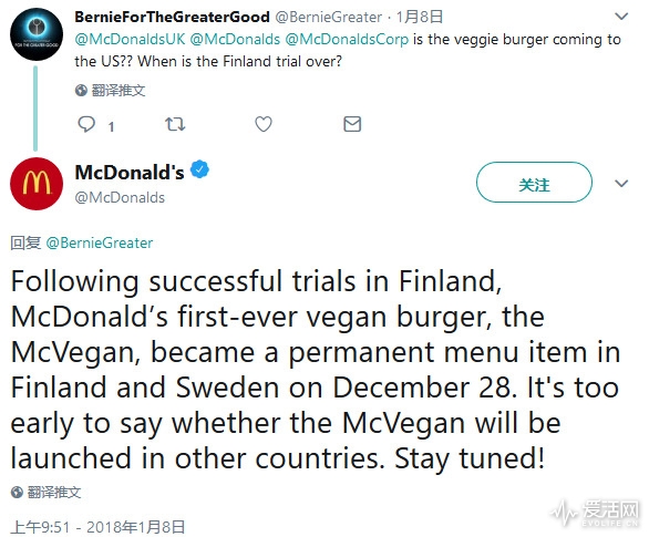 競(jìng)爭(zhēng)對(duì)手麥當(dāng)勞,也在去年12月,與北歐瑞典、芬蘭的餐廳中,推出了McVegan素食漢堡。吸引了不少多年沒(méi)光顧麥當(dāng)勞的顧客的青睞,其他國(guó)家的素食主義者紛紛到麥當(dāng)勞官網(wǎng)留言,希望能夠引進(jìn)這個(gè)素食漢堡。