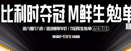 長虹官方旗艦店僅頭圖使用了比利時(shí)國家隊(duì)元素,并無世界杯促銷專題,產(chǎn)品列表也多以購物直降為主,到手價(jià)比標(biāo)價(jià)大約有200-300的降幅。同樣是贊助比利時(shí)隊(duì)的美菱官方旗艦店足球氛圍則頗為濃厚,歐洲紅魔的大紅主色調(diào)和巨幅球星海報(bào),有三款機(jī)型參與比利時(shí)奪冠免單的活動,但小編有個疑問的是“比利時(shí)奪冠 M鮮生全勉單”的頭圖標(biāo)題中,“勉單”是否出現(xiàn)了筆誤還是文字游戲,相信消費(fèi)者也會產(chǎn)生同樣的疑問。