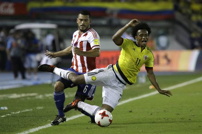 夸德拉多(右)本季在尤文圖斯因傷影響出賽,仍是哥倫比亞的不動(dòng)右翼。(美聯(lián)社資料照)