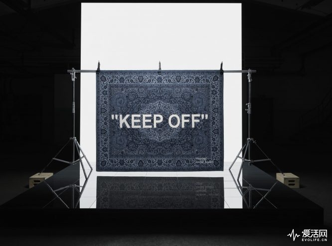此前已經(jīng)曝光的Virgil Abloh合作款,也露出了全部真面目,“KEEP OFF”的嚴厲警告躍然毯上。