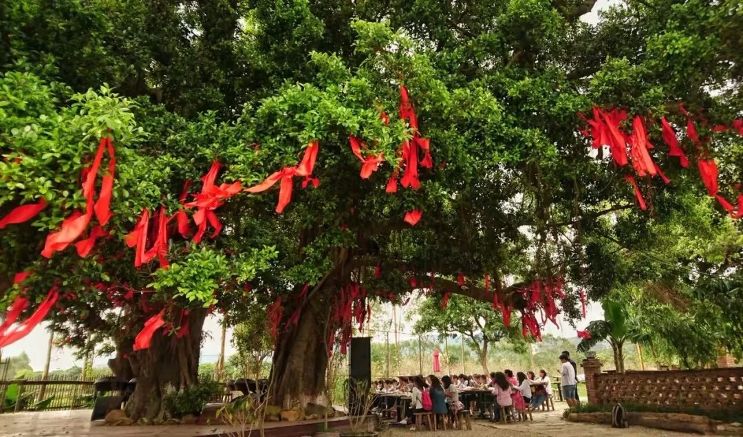 鳥(niǎo)鳴禪意盤(pán)繞,密樹(shù)叢林,借山而居“文明村”內(nèi)兩棵百年“夫妻榕”與百年村落構(gòu)成照應(yīng)保有并傳承了過(guò)往歲月的痕跡和暖和人心的溫度。
