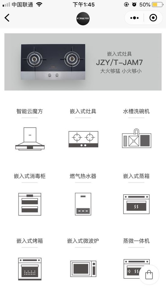 億邦動力網(wǎng)了解到,目前,方太精品店小程序在售品類包括:水槽洗碗機、風魔方油煙機、云魔方油煙機、嵌入式灶具、嵌入式消毒柜、燃氣熱水器、嵌入式蒸箱、嵌入式烤箱、嵌入式微波爐以及蒸微一體機等,共22件商品。