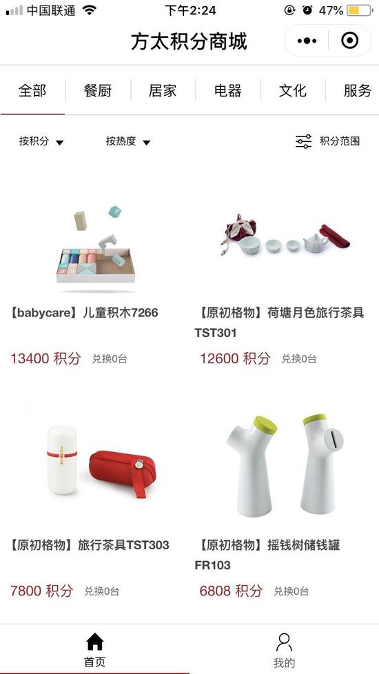億邦動力網(wǎng)還了解到,在方太積分商城小程序中,消費者可根據(jù)自己現(xiàn)有積分兌換商城中的商品,兌換商品品類包括:廚具、家居、電器、文化用品,還可兌換方太的服務(wù)等。