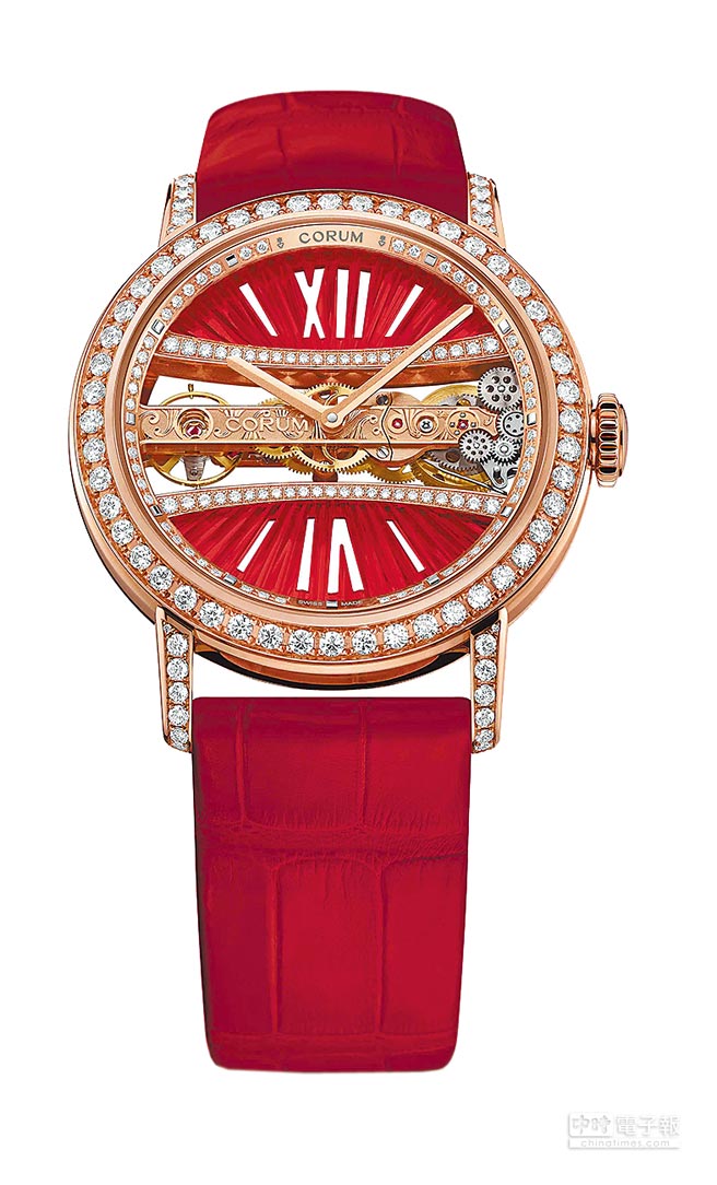 崑崙表金橋系列圓形鑽表,紅色表盤,173萬9000元。(CORUM提供)