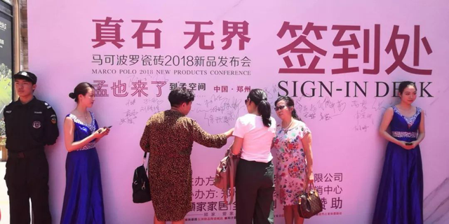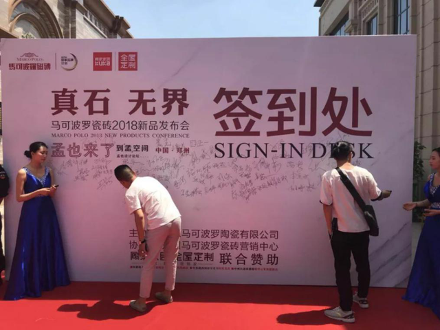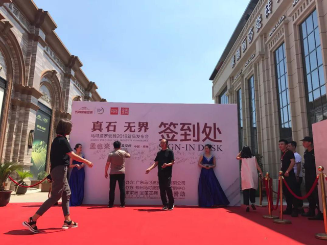 從致辭中感受到了馬可波羅瓷磚在市場中的龍頭地位!由孟也老師,張自端先生,王峰先生,陳志先生,郭正一先生,韓繼紅女士,韓凌云先生,韓社會先生為共同開啟本次“2018馬可波羅瓷磚 真石無界新品發(fā)布會”