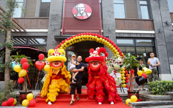 開業(yè)典禮現(xiàn)場進(jìn)行了舞獅等中國傳統(tǒng)節(jié)目的表演。據(jù)了解,31年前來到中國的肯德基一直以“本土化”作為其重要的發(fā)展思路,舞獅是所有肯德基新店開業(yè)時(shí)的保留節(jié)目。除舞獅之外,百里峽肯德基還在餐廳附近的廣場上鋪了一張巨幅中國傳統(tǒng)山水畫,并在山水畫之上擺放了一條宣紙“百尺長卷”,并提供筆墨供游客題詞留念。這張“百尺長卷”陸續(xù)迎來了數(shù)百位游客的圍觀,并有幾十位游客在長卷上題下寄語。