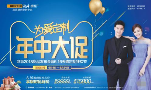 讓我們相約歐派6月大促,以愛之名,為愛定制:6月4日―24日,在全國歐派櫥柜商場開展“年中大促?為愛定制”的夏季新品發(fā)布會暨618天貓定制狂歡節(jié)促銷活動,其中6月16日,歐派將通過天貓直播櫥柜新品發(fā)布會全過程,屆時除田亮、葉一茜明星夫妻親臨現(xiàn)場,為新品發(fā)布造勢外,現(xiàn)場更會抽出免單、洗碗機等大獎。