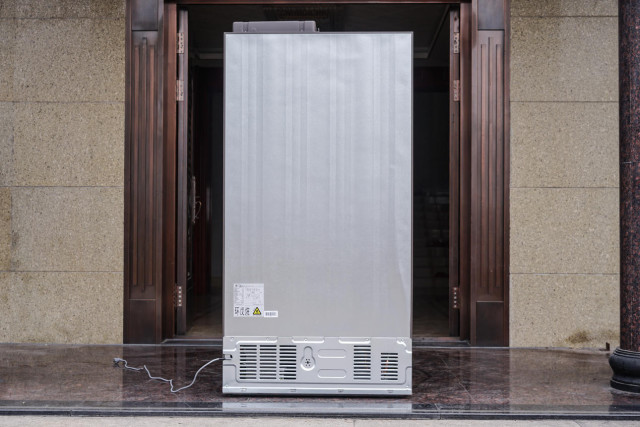 冰箱的后背部分可能我們平時也不太會關(guān)注,不過也不難發(fā)現(xiàn),后背的材料跟側(cè)面是一樣的,一個做了涂裝,一個應(yīng)該是材料本身的顏色,尺寸比較大的原因吧,板材還做了豎向的加強筋設(shè)計。