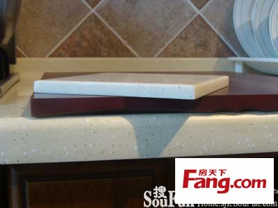 人造石是目前十分走俏的臺面用材。它相對大理石而言,具有無輻射,易清潔,可做任意造型,能實(shí)現(xiàn)無縫拼接等優(yōu)點(diǎn),不足之處是耐高溫性差,鍋底達(dá)100攝氏度以上時(shí)不建議和臺面直接接觸。