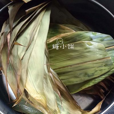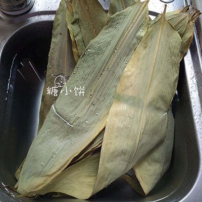 1、干粽葉(我用的箬竹葉)提前用清水浸泡一夜