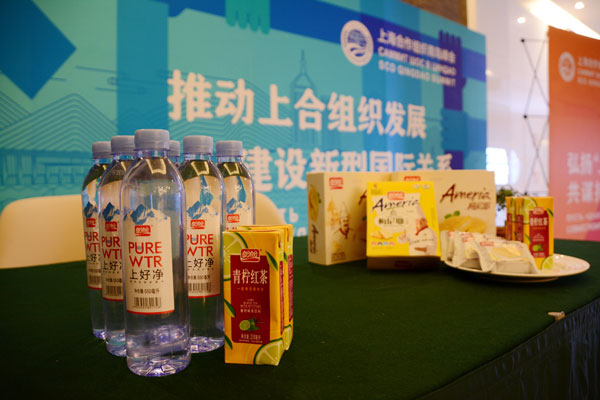 盼盼食品飲料青檸紅茶、上好凈水、梅尼耶涂層蛋糕、干蛋糕等產(chǎn)品亮相上合組織峰會現(xiàn)場