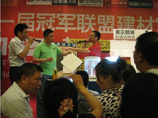 \u00A0\u00A0\u00A0\u00A0【慧聰?shù)蹴斁W(wǎng)】最近美爾凱特市場活動頻繁。5月25日,美爾凱特淄博方面在淄博藍(lán)海大酒店聯(lián)合法恩莎衛(wèi)浴、東鵬瓷磚、金牌廚柜、世友地板、格萊美墻紙等九個品牌舉行了一場異業(yè)品牌聯(lián)盟砍價會。活動由上海砍價團(tuán)主辦,紅星美凱龍家居廣場和冠軍聯(lián)盟協(xié)辦,各品牌都?xì)椌邞],為活動成功舉辦貢獻(xiàn)力量。
