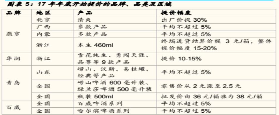 從盈利的角度來說,啤酒確實(shí)應(yīng)該漲價(jià)。不過,從2017年底開始提價(jià)的品牌來看,不少啤酒企業(yè)提價(jià)的產(chǎn)品主要是中低端產(chǎn)品,尤其低端產(chǎn)品提價(jià)幅度最大。