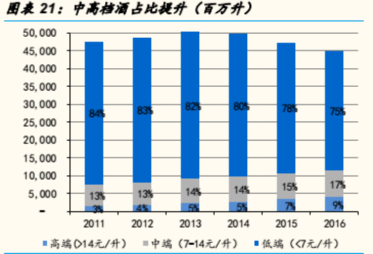 智通財(cái)經(jīng)APP了解到,2017年重慶啤酒的高檔、中檔和低檔分別實(shí)現(xiàn)銷售收入4.94億、21.6億和4.29億,同比增加分別為8.42%、-1.81%和-2.07%。