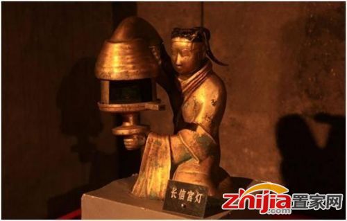 宮燈,南朝已有記載,既是照明工具,又是建筑裝飾藝術(shù)品,主要是指以細木為骨架鑲以絹紗和玻璃,并在外繪各種圖案的彩繪燈。其中,最有名的宮燈是長信宮燈。長信宮燈于1968年出土,是一個宮女跪坐執(zhí)燈形象。各部分可拆卸,燈盤可轉(zhuǎn)動,燈罩可開合。宮女的右臂為煙道,可將燈煙導入器內(nèi),以保持室內(nèi)清潔。