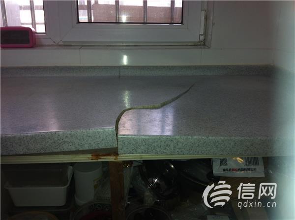 信報全媒體來到徐先生家中,查看了出問題的櫥柜。記者看到,原本裂縫的臺面已經(jīng)斷裂成了兩片并錯位,打開櫥門從側(cè)面可以看到,臺面下方墊著的板材缺了一大塊,而板材缺口處正好在上方臺面斷裂的位置。徐先生說:“櫥柜變成這樣已經(jīng)不能用了,老人也怕劃到手,我也擔(dān)心這塊臺面如果滑落下來,會砸到人。作為海爾的老用戶,這次的事情讓我很寒心。”
