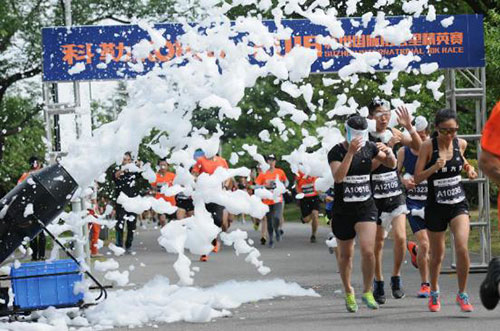 為推進(jìn)全民健身活動的實(shí)現(xiàn),賽事除有男女組的10公里精英賽,還加入了被大世界吉尼斯世界紀(jì)錄授予“趣味互動最多的家庭跑活動”的科勒·家庭樂跑,“泡泡大作戰(zhàn)”、“熱帶雨林”、“魔雨突襲”等數(shù)十個(gè)趣味互動點(diǎn),為馬拉松賽事添加了繽紛看點(diǎn)。在賽道上升起的夢幻泡泡、不時(shí)突降的“魔雨”等,引發(fā)了家庭樂跑者的陣陣歡呼。多樣賽項(xiàng)的設(shè)置,使包括許多孩子在內(nèi)的參與者,在這里體驗(yàn)到馬拉松賽事的樂趣,獲得了一次不錯(cuò)的初次馬拉松輕體驗(yàn)。