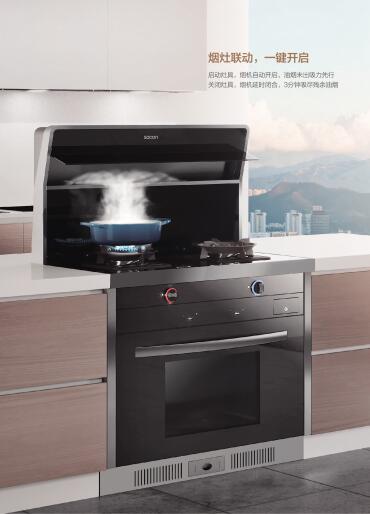 在烹飪過(guò)程中,啟動(dòng)灶具,煙機(jī)跟著自動(dòng)開啟,關(guān)閉灶具,煙機(jī)延時(shí)閉合,3分鐘吸盡殘余油煙;啟動(dòng)電蒸爐,煙機(jī)自動(dòng)開啟,即時(shí)排除富余蒸汽,烹飪結(jié)束后,煙機(jī)延時(shí)閉合,避免高溫蒸汽燙傷。