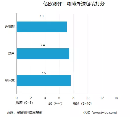 連咖啡、瑞幸和星巴克的外送包裝各有千秋,不過三者包裝得分相差并不大。其中星巴克的包裝最受測(cè)評(píng)者喜愛,其次是瑞幸。連咖啡的包裝設(shè)計(jì)獨(dú)特,內(nèi)附送小卡片,采保溫盒的方式裝載咖啡,但設(shè)計(jì)不易攜帶且不環(huán)保,所以測(cè)評(píng)得分最低。