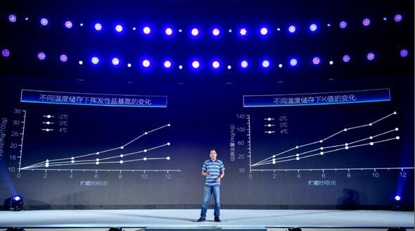 在會(huì)上,浙江大學(xué)生物系統(tǒng)工程與食品科學(xué)學(xué)院陳健初教授以三文魚為研究對(duì)象,公布了他最新的研究報(bào)告。通過揮發(fā)性鹽基氮和K值兩大指標(biāo),檢驗(yàn)了微晶一周鮮7天原鮮、口感如初的魅力,更是國(guó)內(nèi)首次將口感這一感官指標(biāo)進(jìn)行量化分析,用數(shù)據(jù)驗(yàn)證了微晶一周鮮的強(qiáng)大智能保鮮實(shí)力。