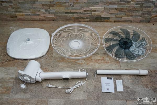 包裝箱內(nèi)含底座、前后網(wǎng)罩、風(fēng)扇葉片、電機及支架、說明書、遙控器等。