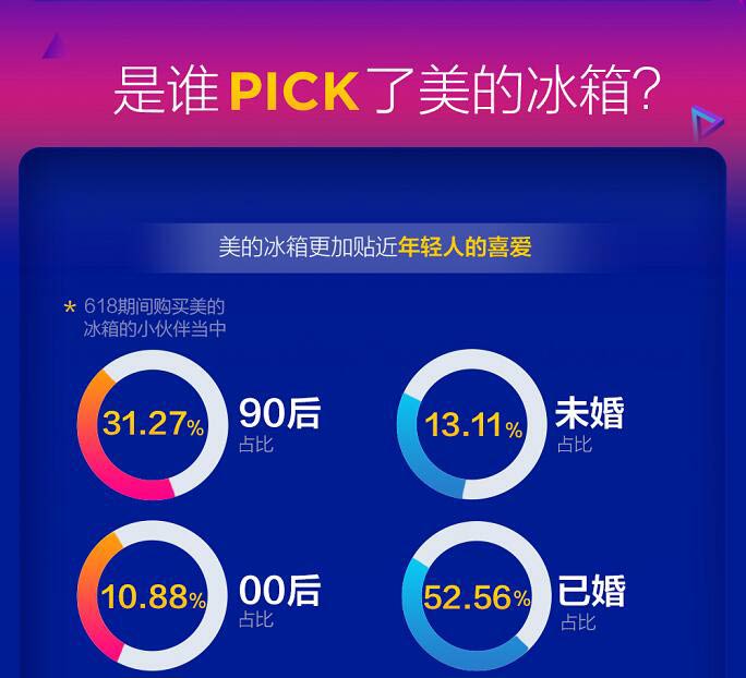 通過美的冰箱大數(shù)據(jù)分析顯示,美的智能冰箱成為了消費(fèi)者們的新寵,特別是年輕受眾,智能科技的產(chǎn)品已成為他們的首選。在消費(fèi)不斷升級(jí)的今天,越來越多的智能家電出現(xiàn)在大家的視線中,在618期間購買美的冰箱的群體中,90后占比31.27%,已經(jīng)成為消費(fèi)主力,生于互聯(lián)網(wǎng)時(shí)代的他們,更傾向于高科技的智能產(chǎn)品。