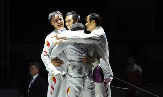此前的男子重劍個(gè)人賽中,中國(guó)隊(duì)的石高峰、蘭明豪、宋洪杰及薛洋東排名為第10、第11、第31及33,此役團(tuán)體賽,男重隊(duì)員們發(fā)揮出色,一路戰(zhàn)勝伊朗、烏茲別克斯坦殺入決賽。決賽對(duì)手哈薩克斯坦在半決賽中戰(zhàn)勝實(shí)力強(qiáng)勁的韓國(guó)隊(duì),無(wú)論是士氣還是實(shí)力都高于中國(guó)隊(duì)。決賽中,中國(guó)隊(duì)與哈薩克斯坦打得非常焦灼,直到最后時(shí)刻才通過(guò)主動(dòng)權(quán)一劍險(xiǎn)勝對(duì)手。