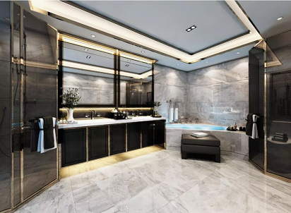 源于雪山白的大理石,白底中鑲黑玉,黑白相間的組合既純凈又高檔,用作地磚以及客餐廳隔斷的墻面磚為一體,有明凈的的質(zhì)感,更給人耳目一新的視覺享受。