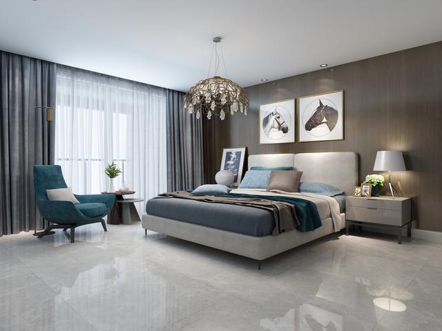 然后是臥室的搭配,常規(guī)的暖色系瓷磚固然可以給人溫馨感,但在盛夏時節(jié),“暖意”就顯得有點格格不入了,所以這時候選擇維納斯灰或者月光白就顯得更加合適。維納斯灰讓氣氛更岑靜,有利于入睡;月光白給人清涼意,觀感更涼快。