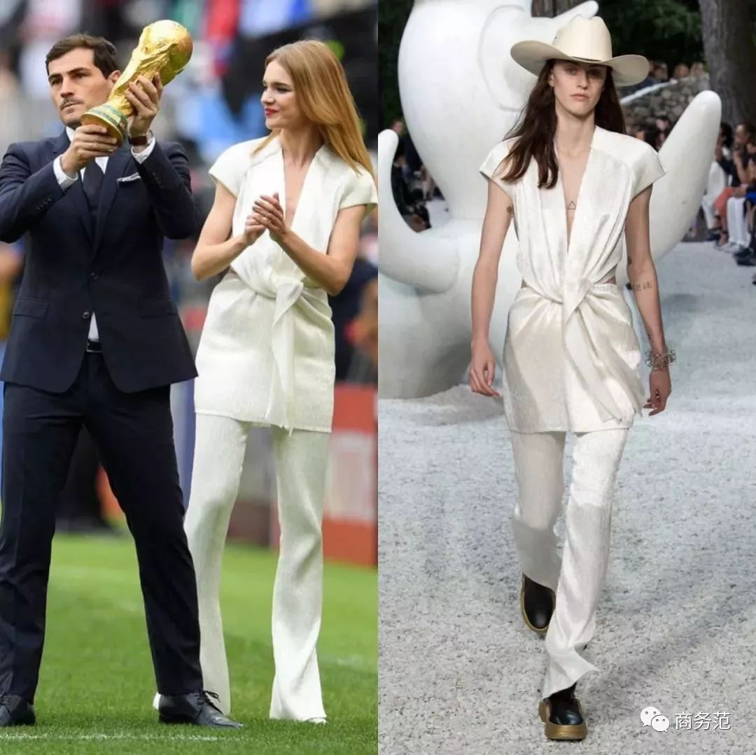 而娜塔莉不僅是俄羅斯國寶級超模,還擁有另一個身份——LV集團太子妃,LV又是世界杯多年的合作伙伴,因此由她來護送大力神杯再合適不過。
