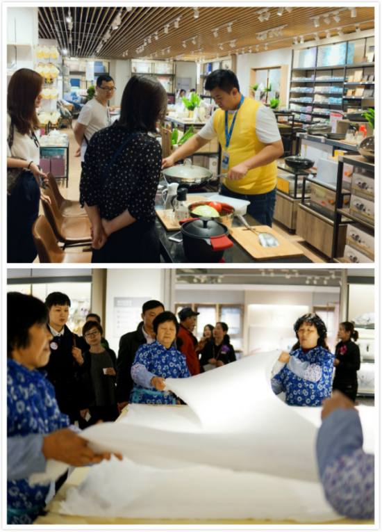 新店開業(yè)期間,HOLA特力和樂會(huì)舉辦多場(chǎng)與消費(fèi)者互動(dòng)體驗(yàn)的活動(dòng),包括手沖咖啡、米酒品嘗、鍋具演示、現(xiàn)場(chǎng)制作蠶絲被等。餐茶具區(qū),熟練的咖啡師會(huì)講解手沖咖啡的制作方法,并展示咖啡壺、咖啡機(jī)的的使用原理;專注于東方飲食文化的米酒品嘗也在此區(qū)域進(jìn)行。床品區(qū),現(xiàn)場(chǎng)也為顧客展示一床優(yōu)質(zhì)蠶絲被的完整制作過程。一慣以關(guān)愛消費(fèi)者為宗旨的體驗(yàn)活動(dòng)一場(chǎng)接一場(chǎng),提供了精致又豐富的居家解決方案。