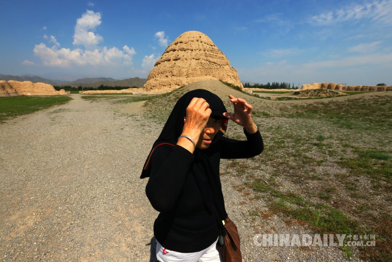 游客從昊王陵前經(jīng)過(guò)。西夏王陵3號(hào)陵塋域面積15萬(wàn)平方米,是西夏王陵中占地面積最大、保護(hù)最好的一座,考古專家認(rèn)定其為西夏開國(guó)皇帝景宗李元昊的“泰陵”,俗稱“昊王墳”。 中國(guó)日?qǐng)?bào)記者 姜東 攝
