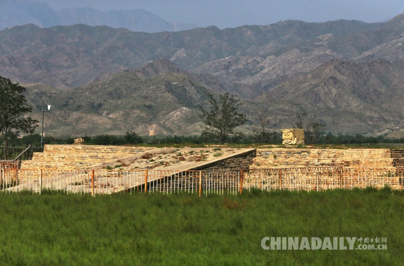 昊王陵前的力士志文支座的雕塑。從20世紀(jì)70年代至今,先后在西夏陵各帝王陵的碑亭遺址中出土了十一方獨(dú)具特色的石雕力士志文支座,力士志文支座也稱為人像石座。西夏石刻品中的力士志文支座尤其具有特色,可謂獨(dú)樹一幟。 中國(guó)日?qǐng)?bào)記者 姜東 攝