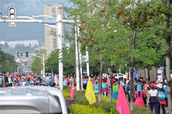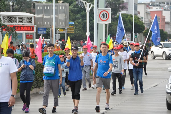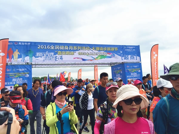 在運(yùn)動(dòng)員代表、著名跑者“珊瑚”的領(lǐng)銜下,3000多位來自全球各地的徒步受好者從大理全民健身中心東廣場出發(fā),以團(tuán)隊(duì)制的形式分別完成了15公里、35公里、50公里的徒步活動(dòng)。