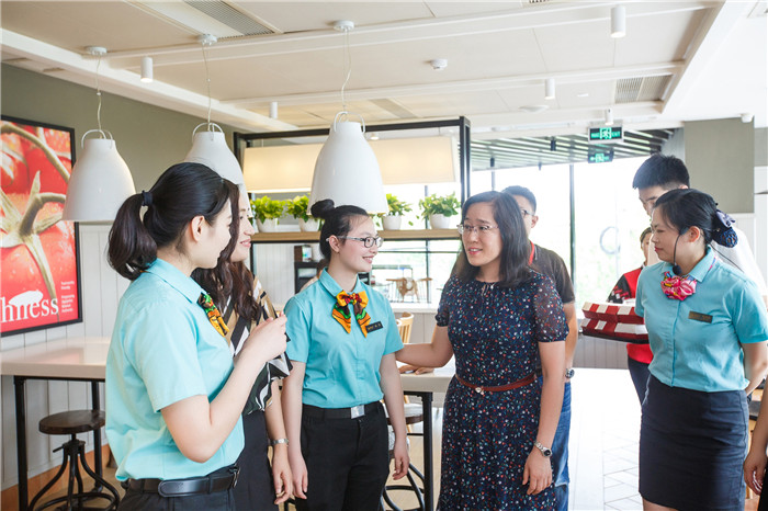 2015年底,百勝借助校企共建“百勝班”開啟與威海職業(yè)學(xué)院的校企合作,通過‘輪轉(zhuǎn)制’讓學(xué)生在肯德基接受實(shí)習(xí)、培訓(xùn)。“百勝班”采用“3+3”的人才培養(yǎng)模式,即3次企業(yè)培訓(xùn)課程加3次門店實(shí)習(xí),通過實(shí)習(xí)生(做中學(xué))、訓(xùn)練員(教中學(xué))、儲(chǔ)備經(jīng)理/值班經(jīng)理(管中學(xué))三個(gè)階段,培養(yǎng)學(xué)生成為經(jīng)營管理人才。威海職業(yè)學(xué)院經(jīng)濟(jì)管理系副教授張愛娜介紹,通過“百勝班”的培養(yǎng),學(xué)生能夠感受和體驗(yàn)國際化企業(yè)的營運(yùn)管理模式,熟練掌握工作技能,養(yǎng)成良好的工作習(xí)慣和素養(yǎng),明確自我職業(yè)定位,實(shí)現(xiàn)崗位成才。截止目前已經(jīng)約有300人次的學(xué)員參加了百勝班的課程。