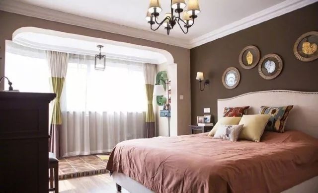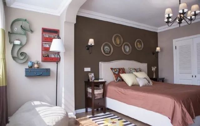 主臥和客廳的色調(diào)完全相反,采用的是顏色是暖色調(diào)的咖啡色和磚紅色,有助于睡眠;打通陽臺和臥室一體化,會讓臥室面積比較大,另外臥室的通透性也比較強(qiáng)。