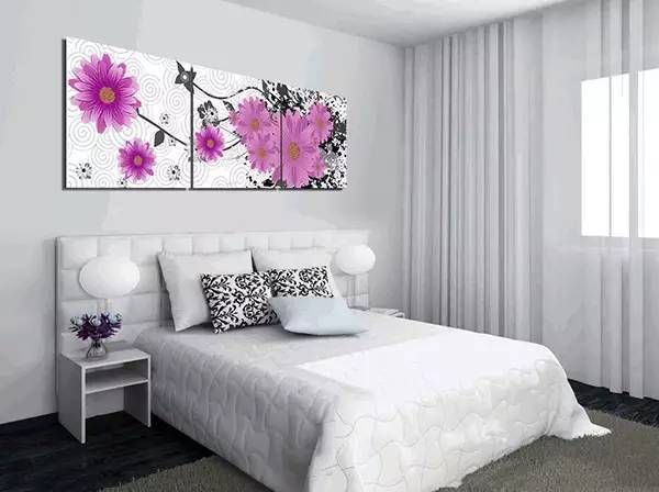 臥室是個(gè)人生活的私密空間,也是休息睡眠場(chǎng)所。臥室要營造溫馨浪漫、舒適恬靜的氛圍,掛畫以暖色為主色調(diào)。可以選擇人物人體、花卉等題材掛畫,當(dāng)然也可以掛自己的肖像畫或結(jié)婚照,以增進(jìn)感情。