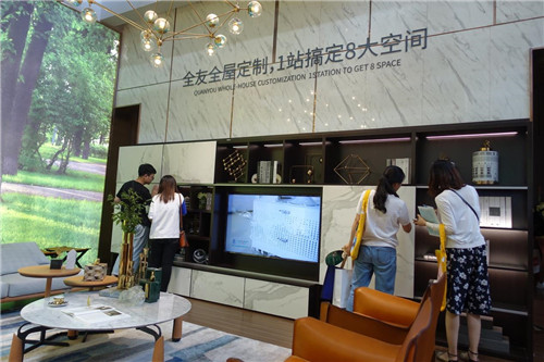 在中國(guó)國(guó)際展覽中心(新館)E2E06,全友全屋定制展館人山人海。眾多參觀人員近距離感知了全友綠色展館的溫馨氛圍與全友全屋定制產(chǎn)品的科技、時(shí)尚。