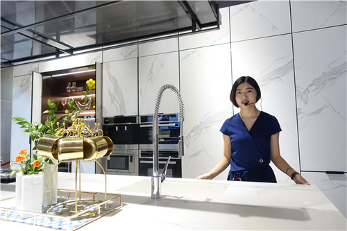 在櫥柜展示區(qū),全友“無極”櫥柜深受觀者好評(píng)。極簡(jiǎn)的設(shè)計(jì)理念、純粹的色彩搭配、大花白石材紋理彰顯高端品質(zhì)。這款櫥柜融合中、西式廚房特點(diǎn),滿足現(xiàn)代人對(duì)廚房的功能需求。置于櫥柜空間,觀者可以體驗(yàn)櫥柜隱藏的各種“黑科技”!“意大利回旋折門” “智能升降插座”“360°旋轉(zhuǎn)吧臺(tái)”“隱藏式折疊餐桌”等智能元素讓觀者贊嘆連連。