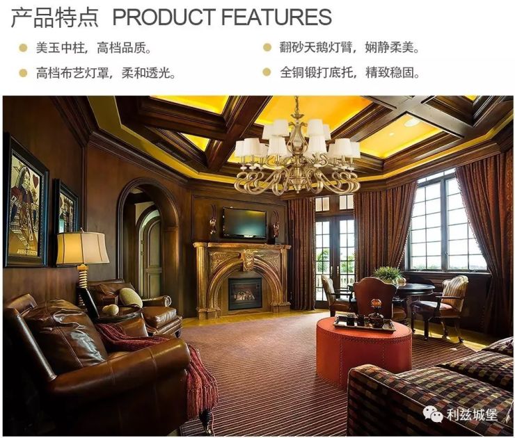 傳承歐美家具藝術(shù)美學(xué),雷士集團(tuán)(英國)為海外歐美市場推出新歐美風(fēng)格高端子品牌“Leeds Castle 雷士.利茲城堡”,高貴的天鵝徽章成為品牌優(yōu)雅的象征。“Leeds Castle 雷士.利茲城堡”以獨(dú)具匠心的銅燈燈飾、精選實(shí)木家具、擺件、地毯、布藝燈家居精品,演繹高貴的新歐美家居生活藝術(shù)。