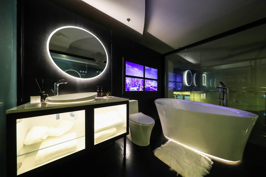 在現(xiàn)場的科勒維亞套間中,嘉賓可感受科勒云境自動打開燈光,并根據(jù)早晚、氣候調(diào)節(jié)合適光線的貼心體驗。