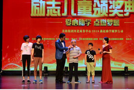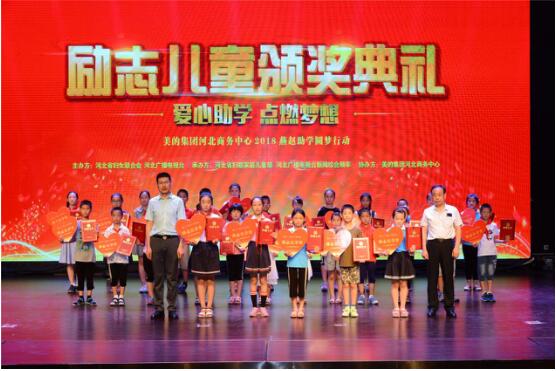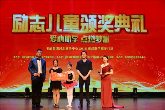 2018年6月22日,由河北省婦女聯(lián)合會(huì)、河北廣播電視臺(tái)聯(lián)合主辦、河北省婦聯(lián)家庭兒童部、河北廣播電視臺(tái)新聞綜合頻率承辦,愛心企業(yè)美的集團(tuán)河北商務(wù)中心協(xié)辦的“愛心助學(xué)·點(diǎn)燃?jí)粝搿?018燕趙助學(xué)圓夢(mèng)行動(dòng)勵(lì)志兒童頒獎(jiǎng)典禮在石家莊大劇院落幕。