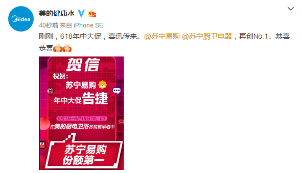 618期間,蘇寧易購(gòu)在美的銷售渠道中穩(wěn)居第一。