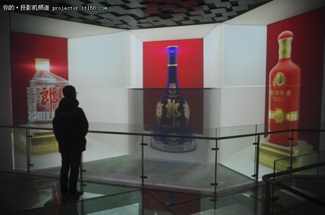 接下來,我們來到了產(chǎn)品展示長廊,這里共有5臺索尼VPL-F435HZ激光工程投影機與2臺索尼VPL-SW631超短焦投影機,每臺投影機負(fù)責(zé)詳細(xì)介紹一款郎酒明星產(chǎn)品。整個長廊空間錯落有致,內(nèi)容詳實動感,產(chǎn)品的特色優(yōu)勢一覽無余。