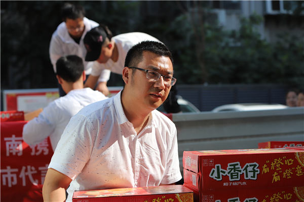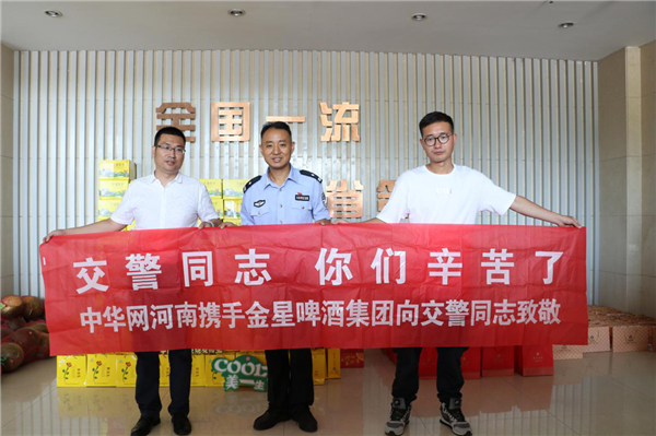 啟動(dòng)儀式一結(jié)束,金星啤酒集團(tuán)宣傳部部長(zhǎng)陳俊全程跟隨走進(jìn)一線,將愛(ài)心物資一一送到交警、消防等辛勤在一線工作的戶(hù)外勞動(dòng)者們手中,對(duì)他們的辛勞付出表示慰問(wèn)和真誠(chéng)的感謝,也希望這些物資能讓他們?cè)谘籽紫娜绽锔惺艿浇z絲清涼。
