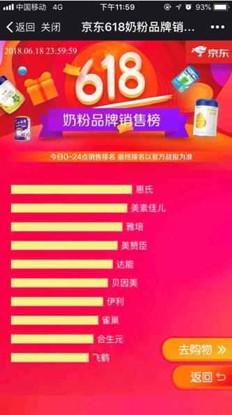 一年一度的618電商節(jié)剛剛落下帷幕,兩大電商平臺京東和天貓以全面增長讓今年的年中大促再次成為消費者和商家們的雙重狂歡。國產(chǎn)奶粉領軍品牌貝因美在6月18日大促狂歡當日創(chuàng)下佳績,分別奪得天貓旗艦店全品牌奶粉銷售第一、京東自營國產(chǎn)奶粉第一的雙冠王,成為國產(chǎn)奶粉崛起浪潮的領導者。