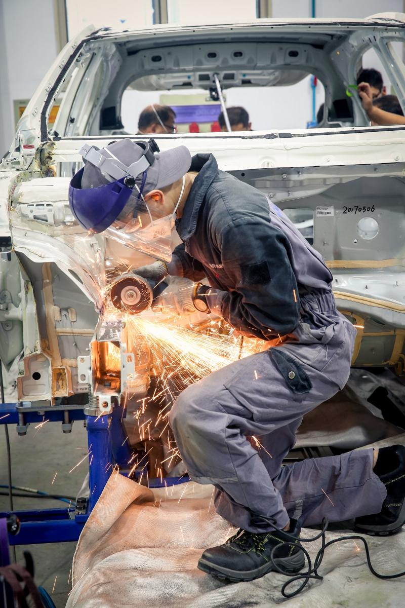 2017年10月,第44屆世界技能大賽在阿聯(lián)酋阿布扎比拉開帷幕,來自59個(gè)國家和地區(qū)的1200余名選手在50個(gè)項(xiàng)目展開角逐。車身修理項(xiàng)目比賽的賽程4天,累計(jì)比賽時(shí)間為22小時(shí)。這是對(duì)選手技術(shù)技能、體能耐力、心理素質(zhì)、應(yīng)變能力等方面綜合實(shí)力的考驗(yàn)。