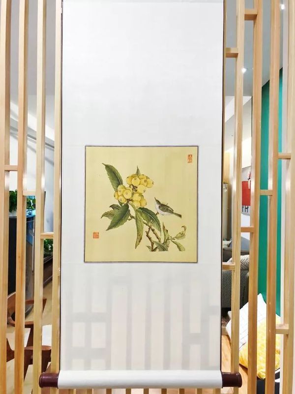 增設了格柵隔斷,從而劃分出玄關空間。由于業(yè)主媽媽信佛,在玄關一側(cè)設置了佛龕。業(yè)主親自手繪的一幅工筆花鳥,掛在這里清新淡雅。