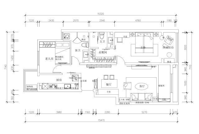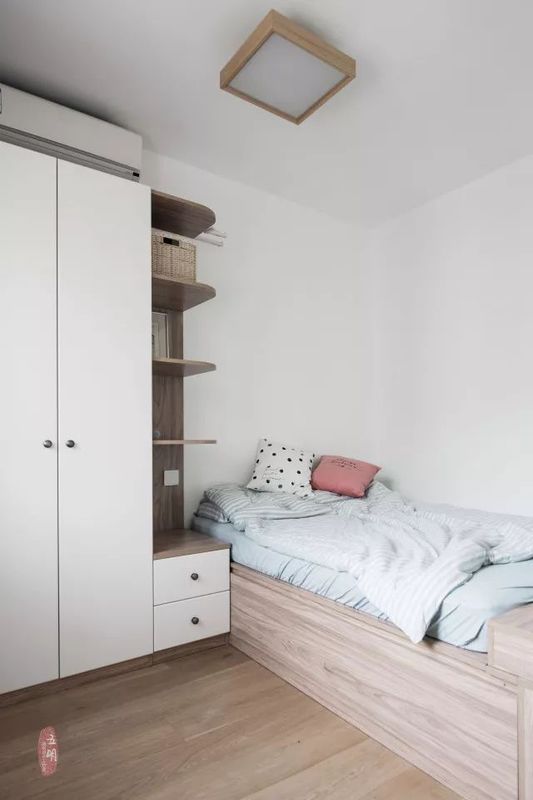 白色和原木色搭配,自然素凈,最適合老人家喜歡安靜,大大的衣柜和箱體床,儲物力不在話下。